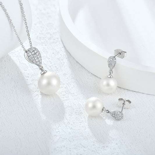 Women's Fashion Sterling Silver Zircon Pearl Necklace