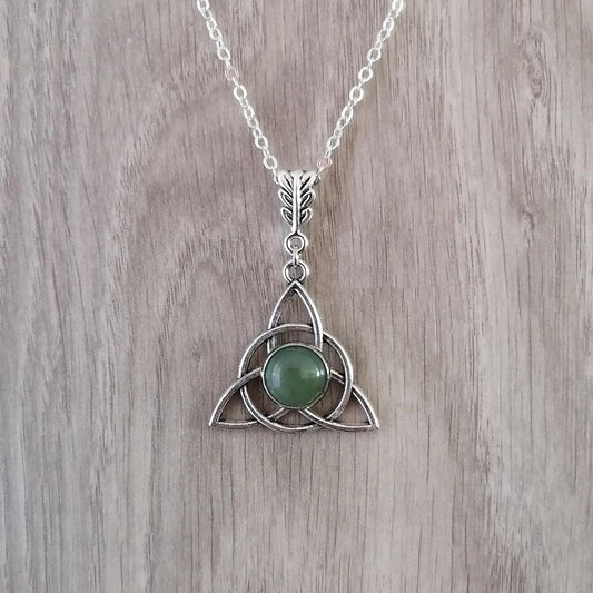 Catharanthus Roseus Celtic Knot Natural Stone Pendant Necklace