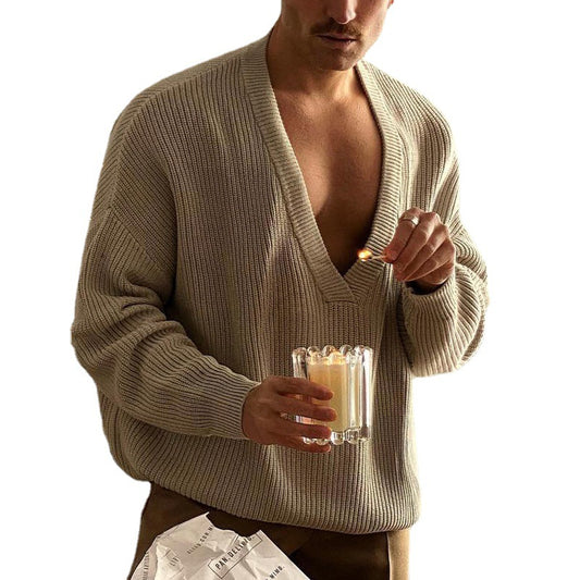Men's Fashion Casual V-neck Pullover Loose Sweater
