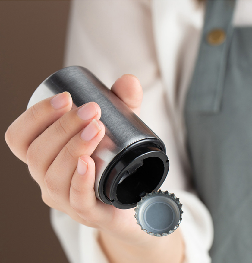 Abridor de botellas de cerveza, Abridor de botellas automático, Acero inoxidable magnético automático Sin daños a la tapa de la botella Abrebotellas con resorte de acero empujando hacia abajo,