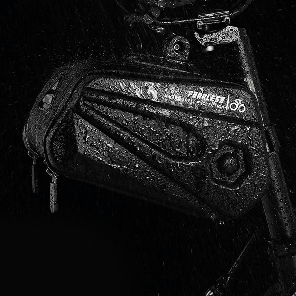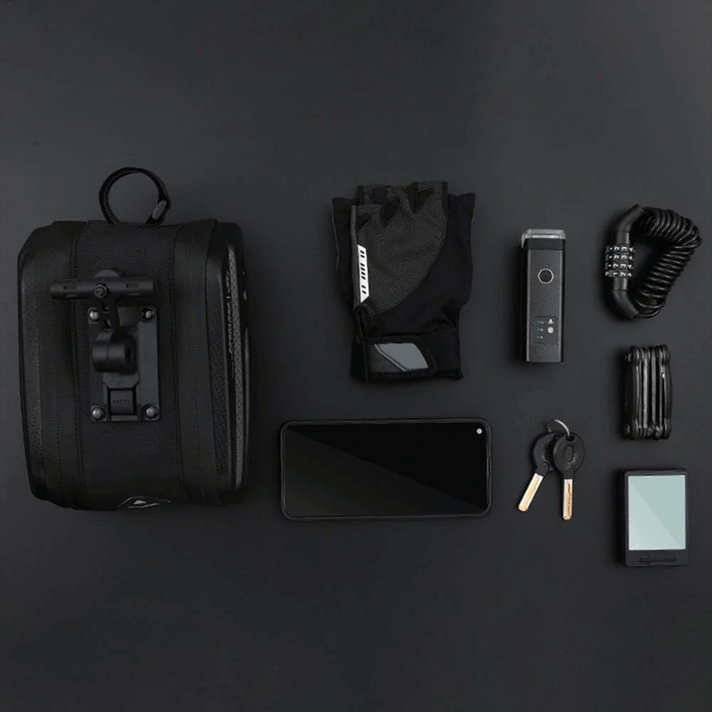 Waterproof portable bag to place on bike, also contains space to place an alert light.