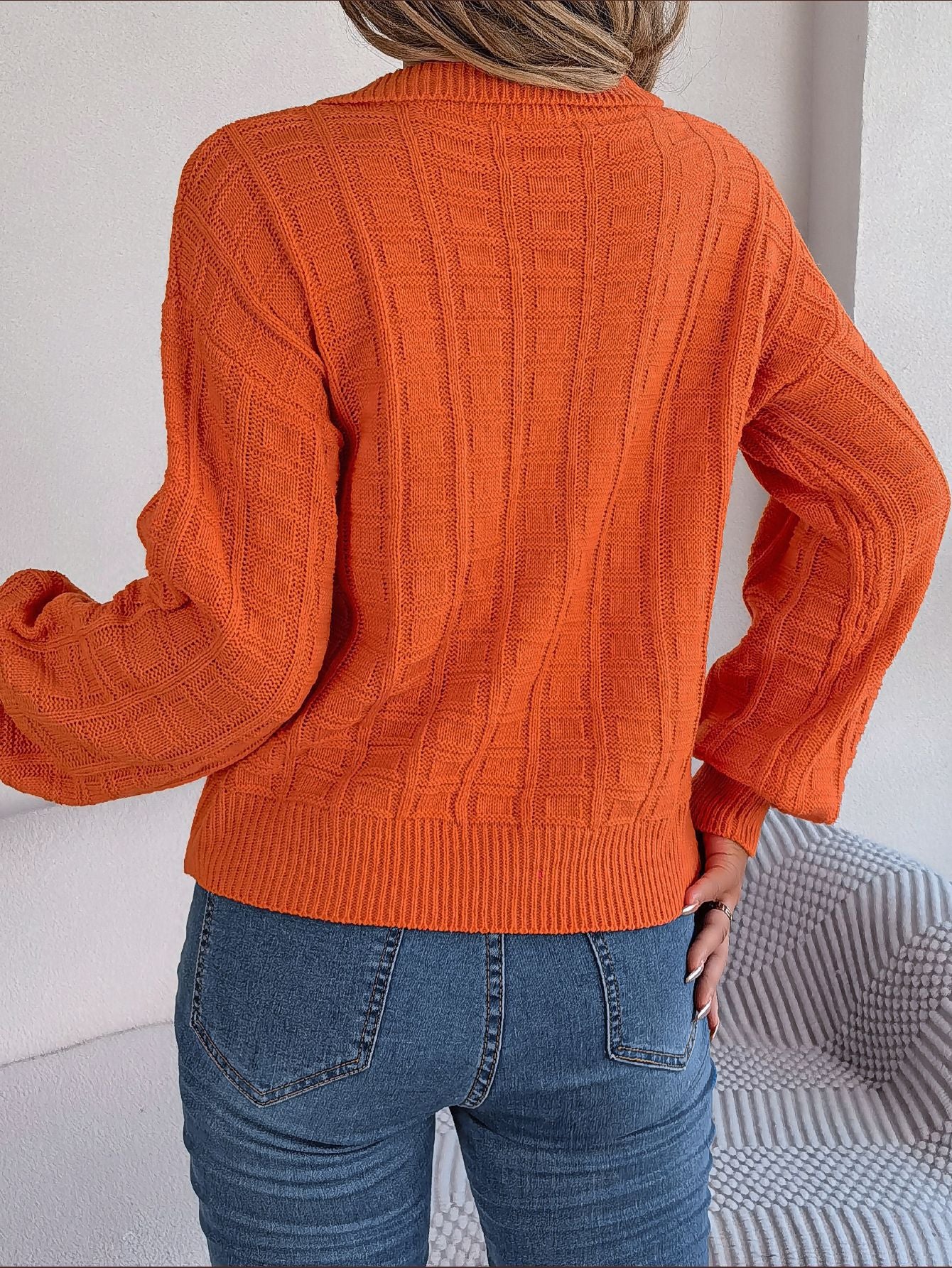 Casual Polo Collar Solid Color Plaid Long Sleeve Knitted Pullover Sweater