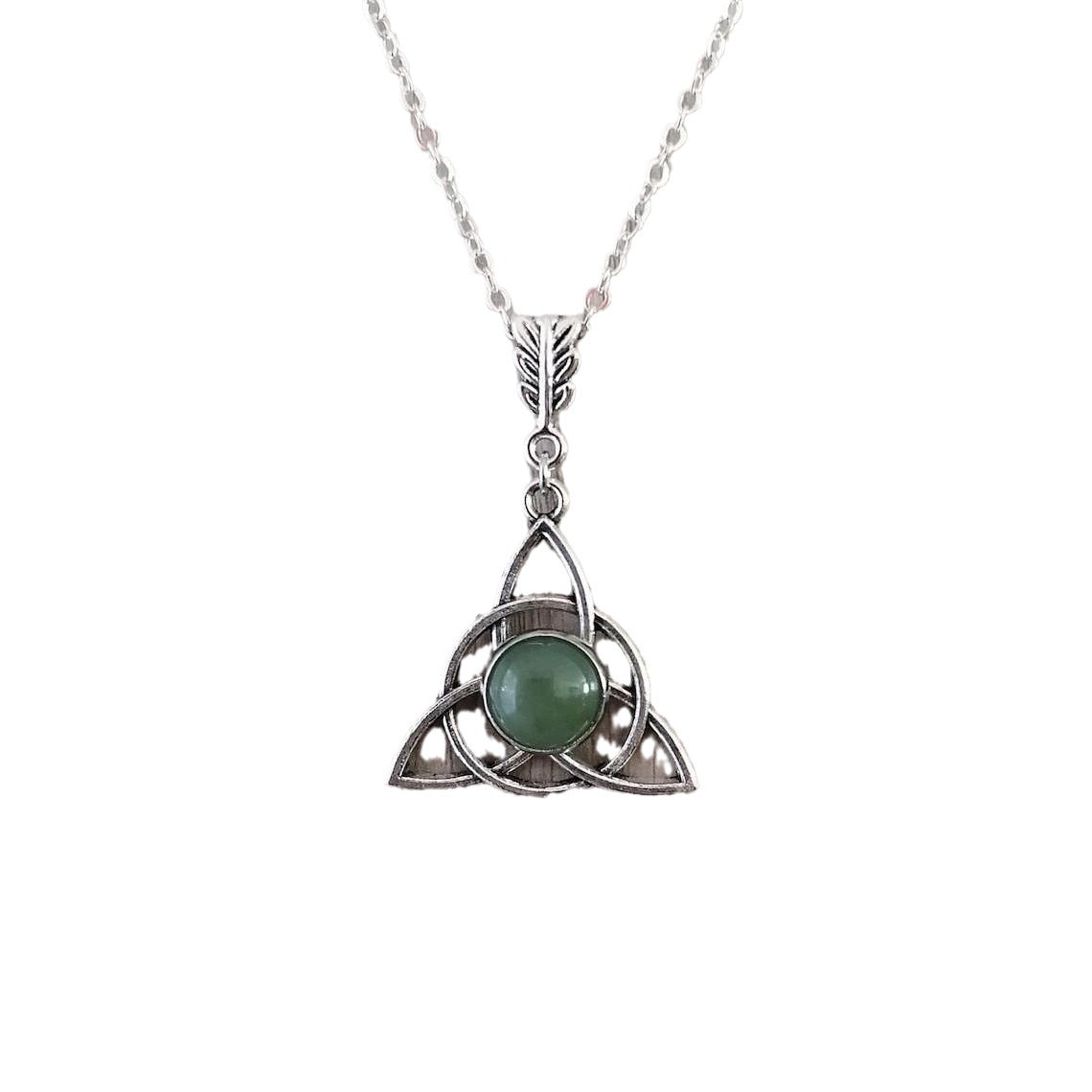 Catharanthus Roseus Celtic Knot Natural Stone Pendant Necklace