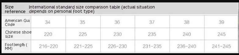 Size: 36, 37, 38, 39, 40, 41, 42, 43