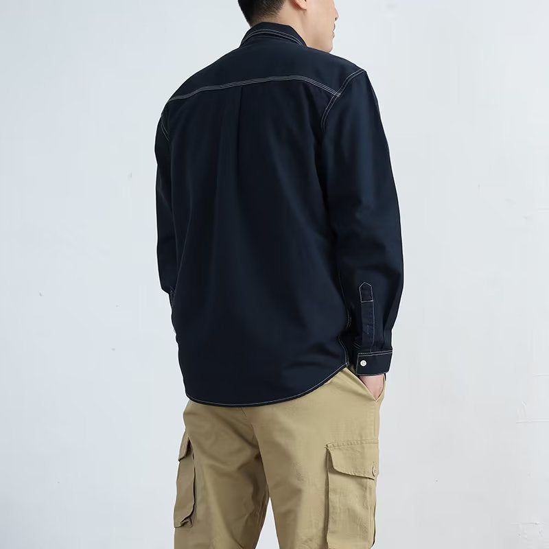 Men's Fashion Casual Square Collar Long Sleeve Shirt