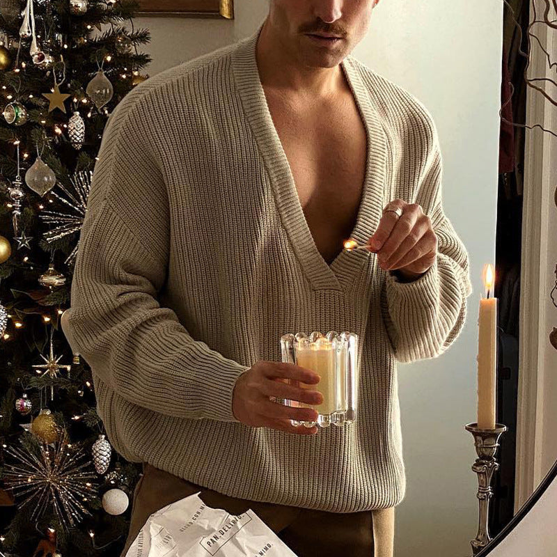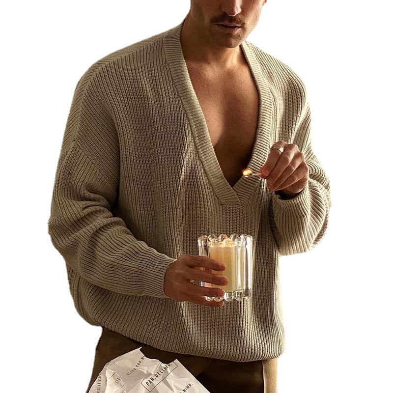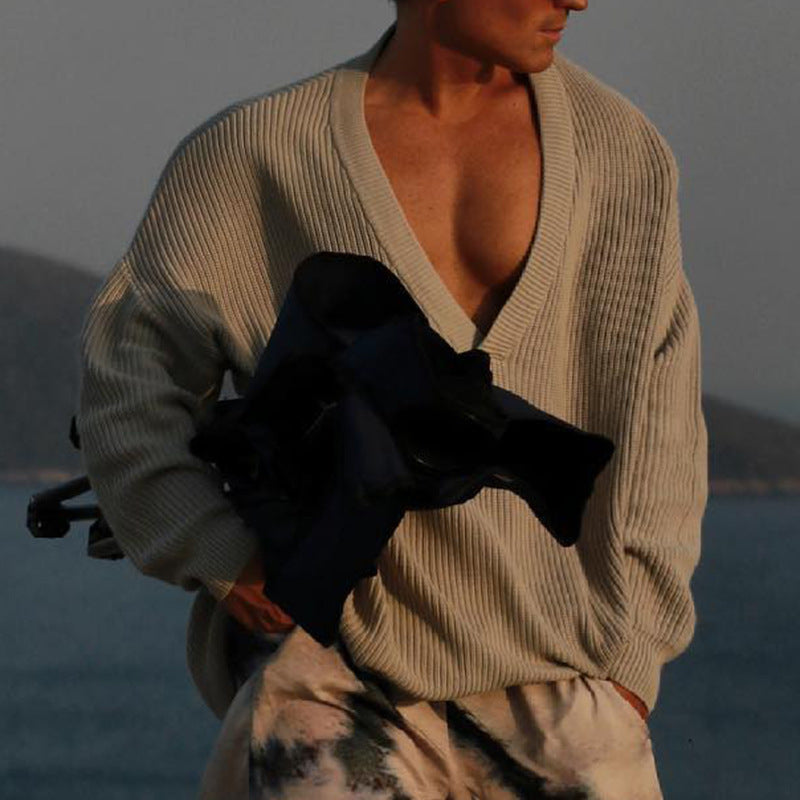 Men's Fashion Casual V-neck Pullover Loose Sweater
