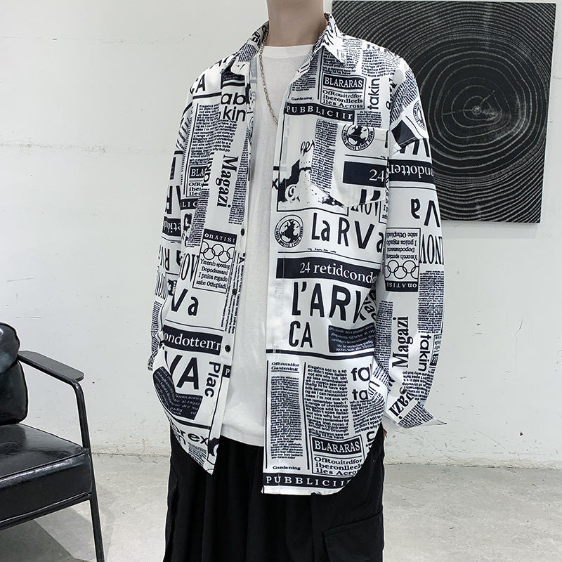 Men's Newspaper Graffiti Print Long-sleeved Shirt