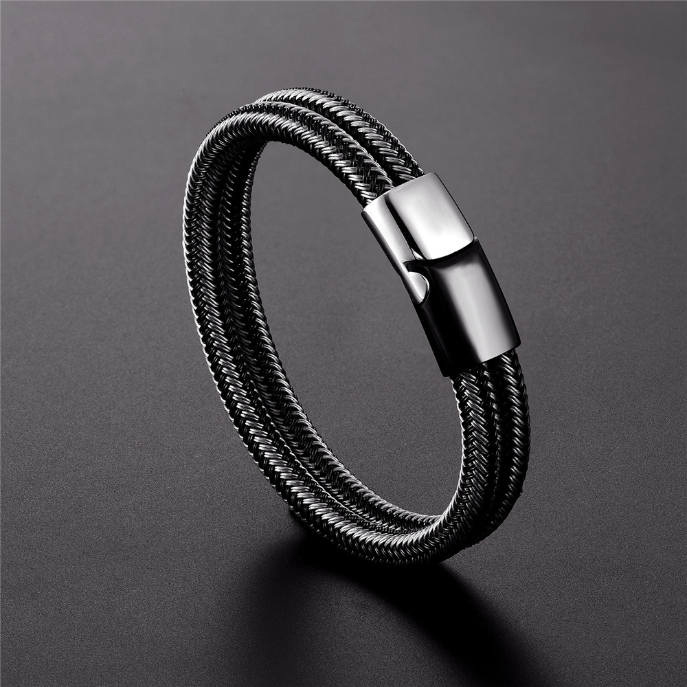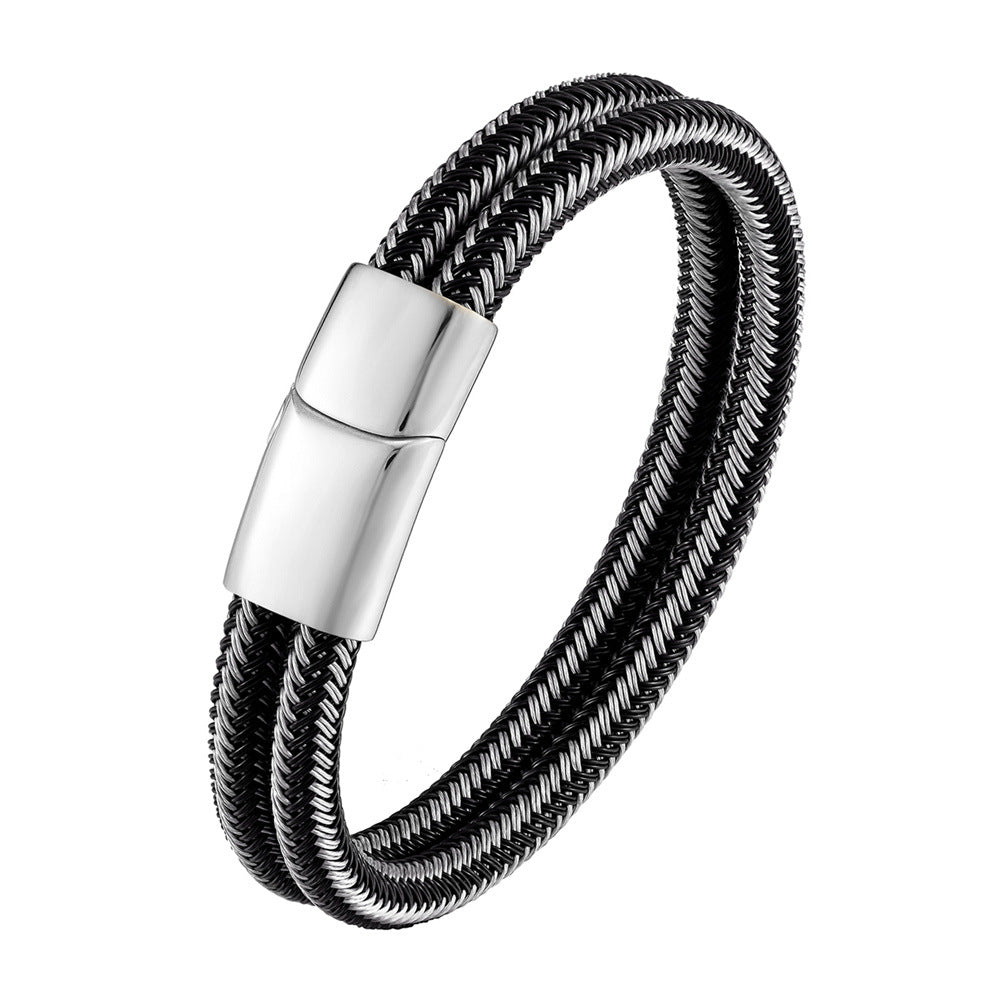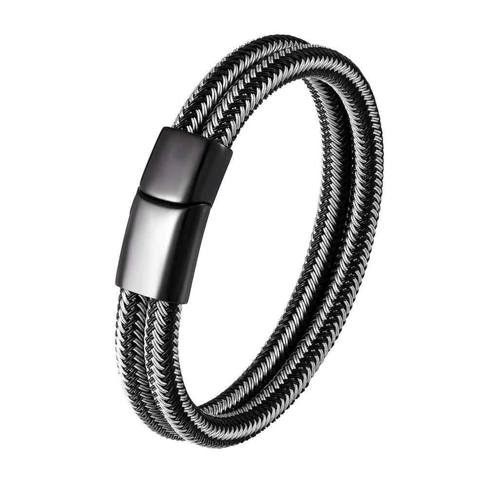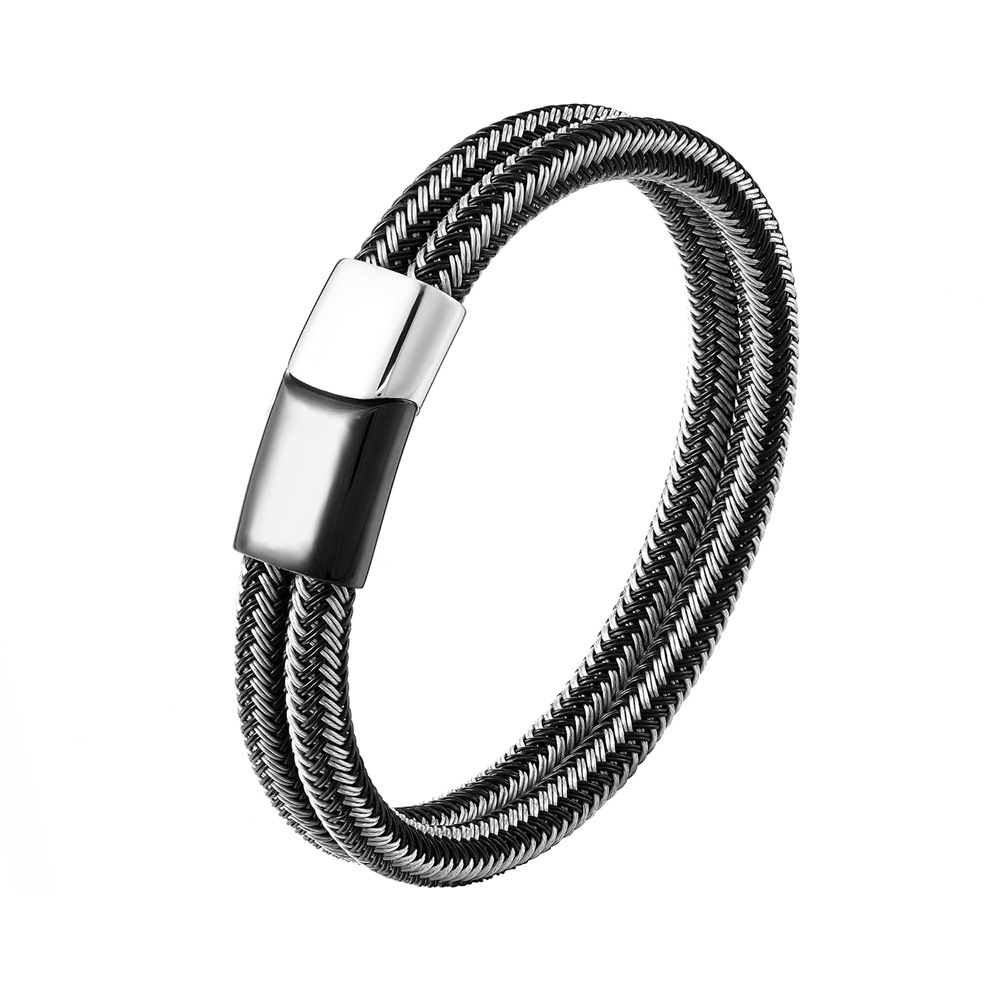 Men's Steel Wire Woven Stainless Steel Double Loop Bracelet