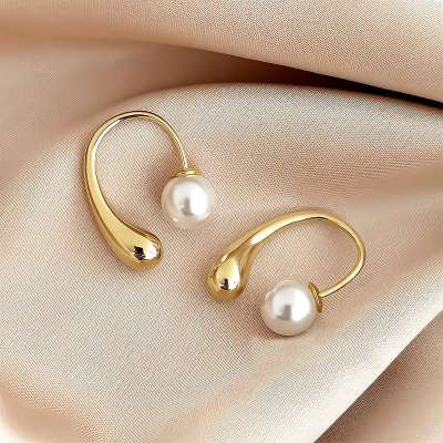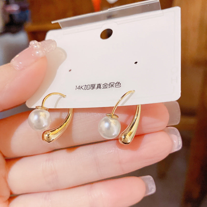 Metal Water Drop Shape Pearl Design Earrings