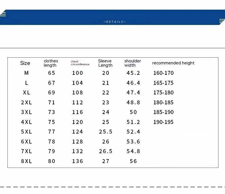 Size: M,L,XL,2XL,3XL,4XL,5XL,6XL,7XL,8XL