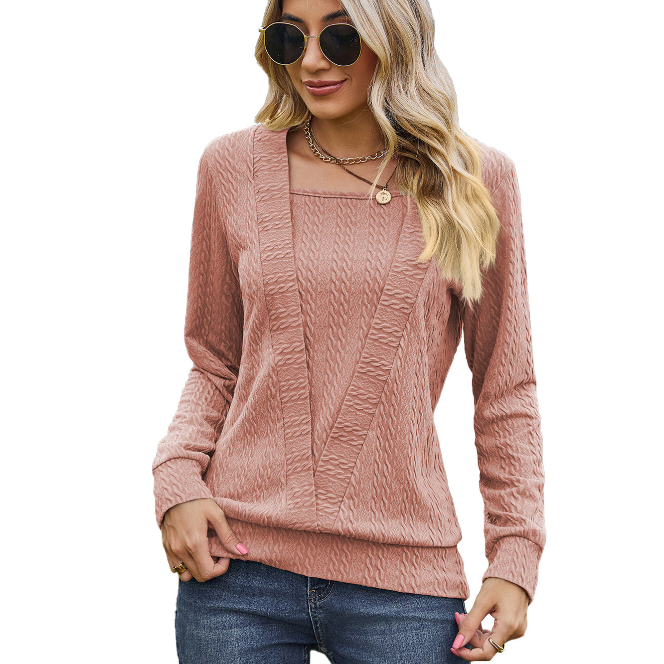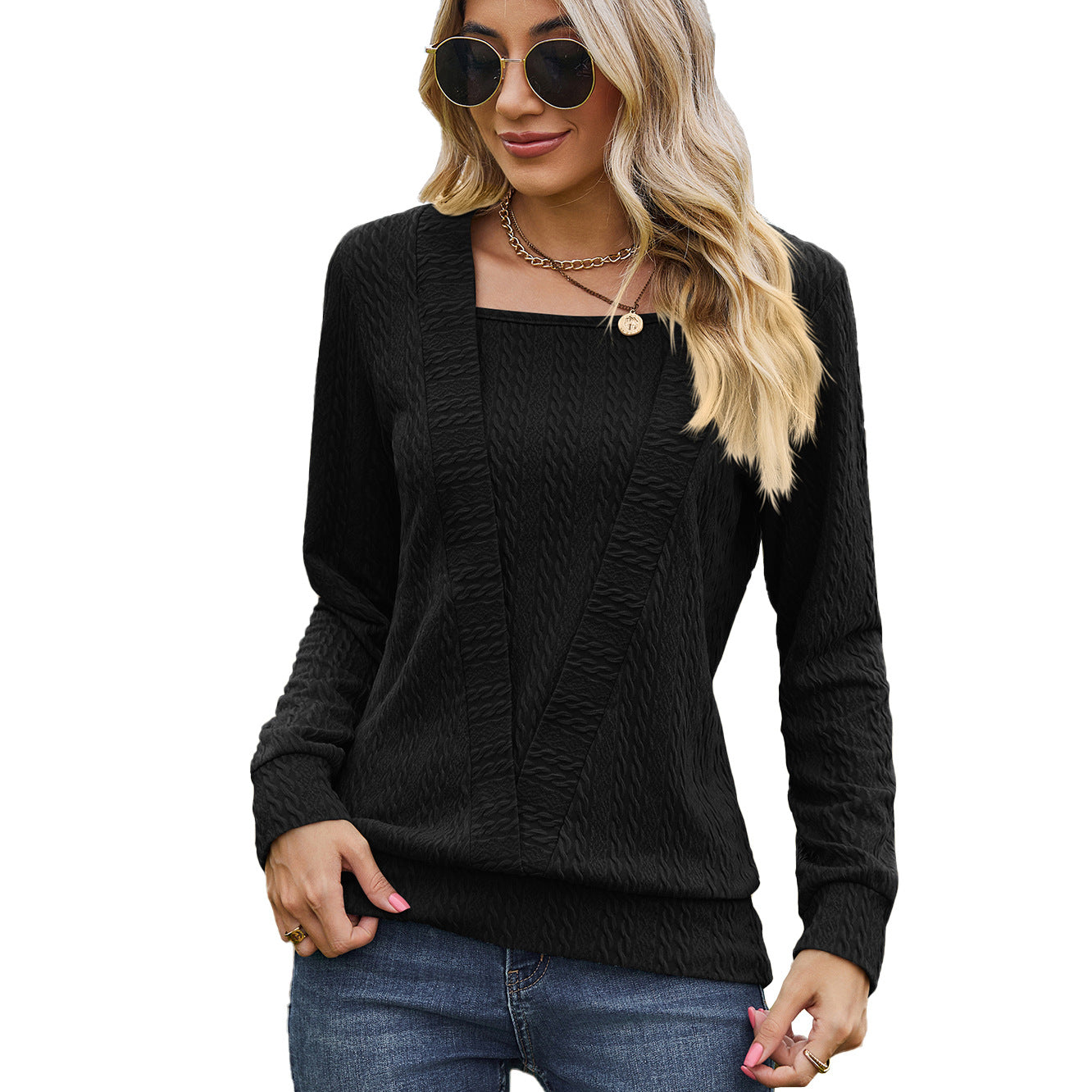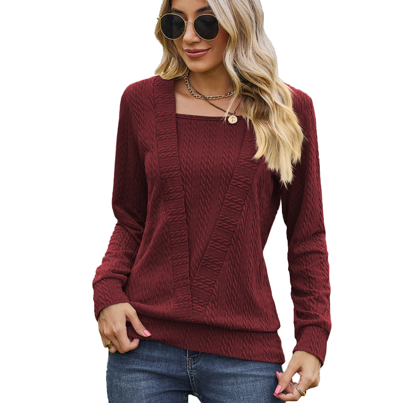 Square Collar Cross Loose Long-sleeved T-shirt Top For Women